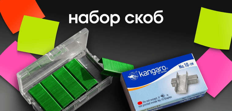 Скобы "Kangaro", №10, 1000 шт, черный Скобы "Kangaro", №10, 1000 шт, черный